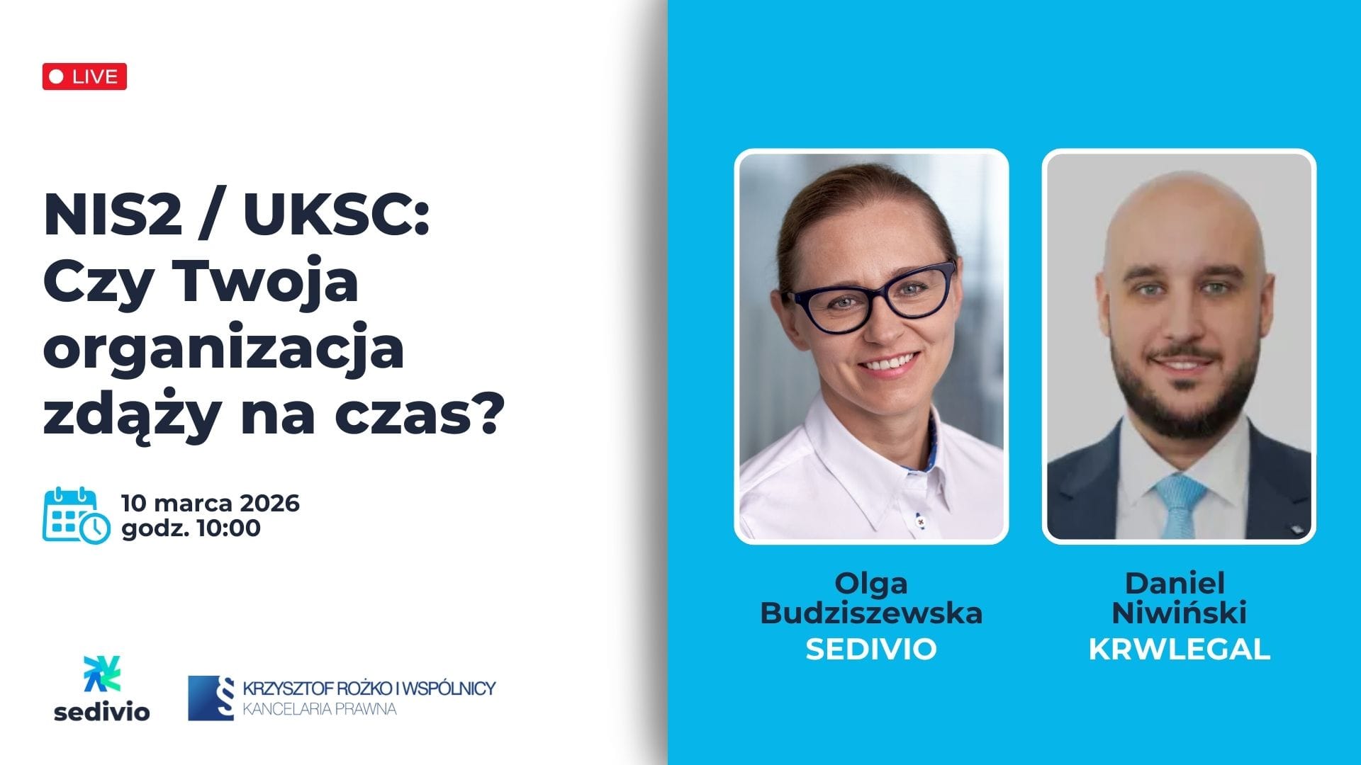 Podczas pierwszego spotkania live przedstawiliśmy konsekwencje nowelizacji UKSC w kontekście NIS2, omówiliśmy zakres podmiotowy regulacji oraz wskazaliśmy kluczowe działania, które organizacje powinny rozważyć na etapie przygotowawczym.